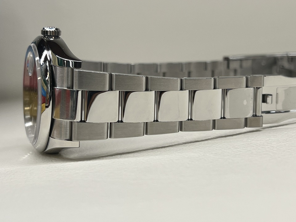 こちらは、現在では生産終了となった『オリーブグリーンパームモチーフダイヤル』。スムースベゼルとオイスターブレスとの相性も良く、コーポレートカラーでもあるグリーンと個性的なデザインが魅力のダイヤルでございます。2024年製の高年式個体でコンディション良好な個体となります。