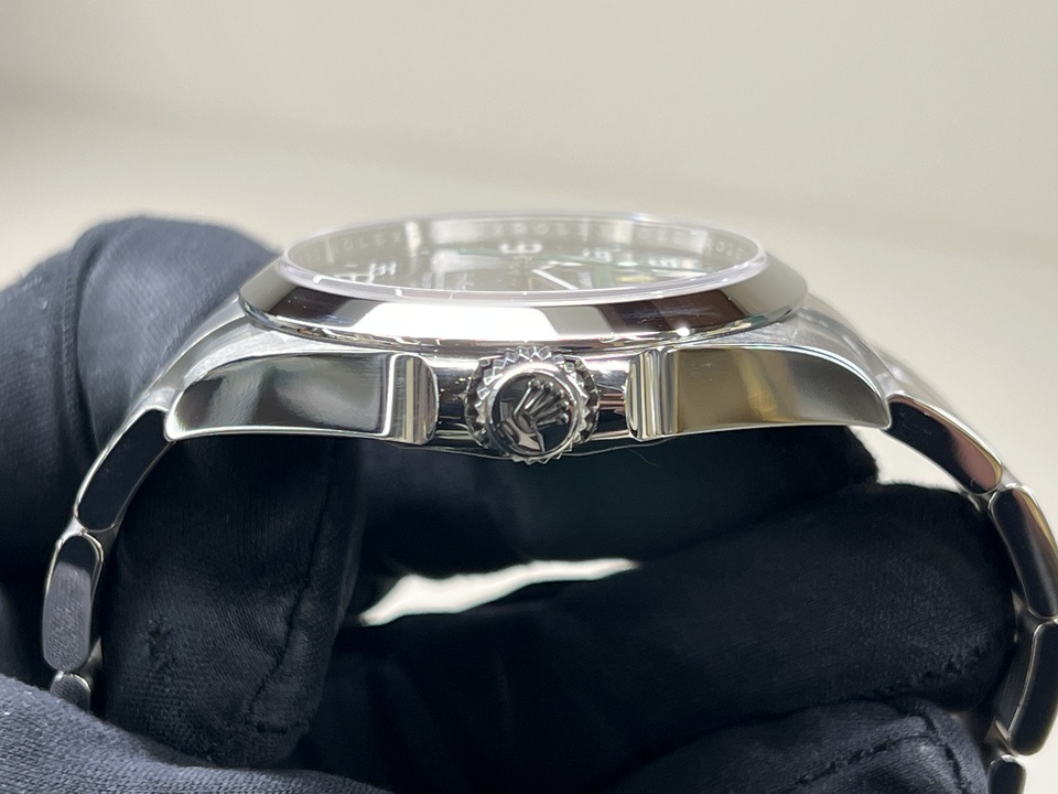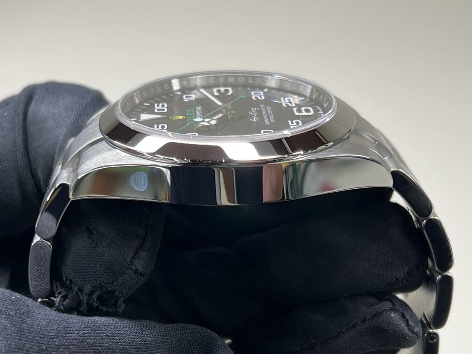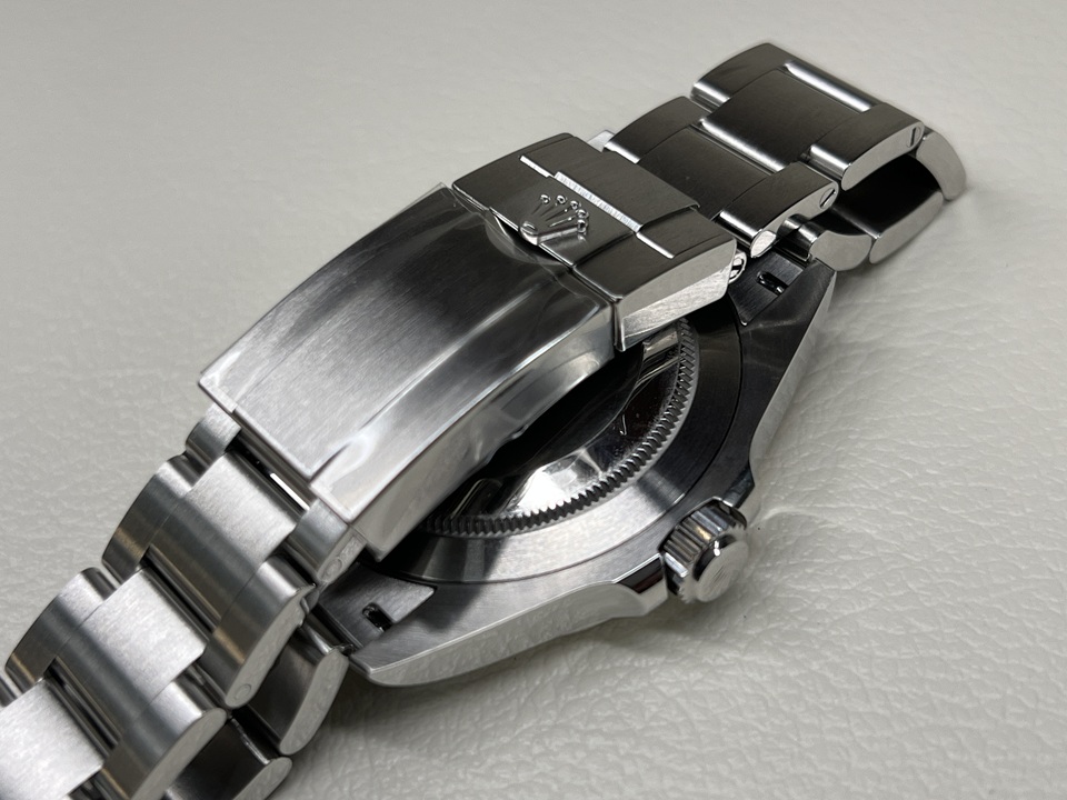 | 本日は“AIR-KING”(Ref.126900)をご紹介。2022年に登場した現行モデルのエアキング『Ref.126900』前モデル『Ref.116900』からの変更点として、新たにリューズガードを採用。クラスプ部分はシングルからダブルロックへと変更され、スポーティーな印象が増した1本でございます。 |