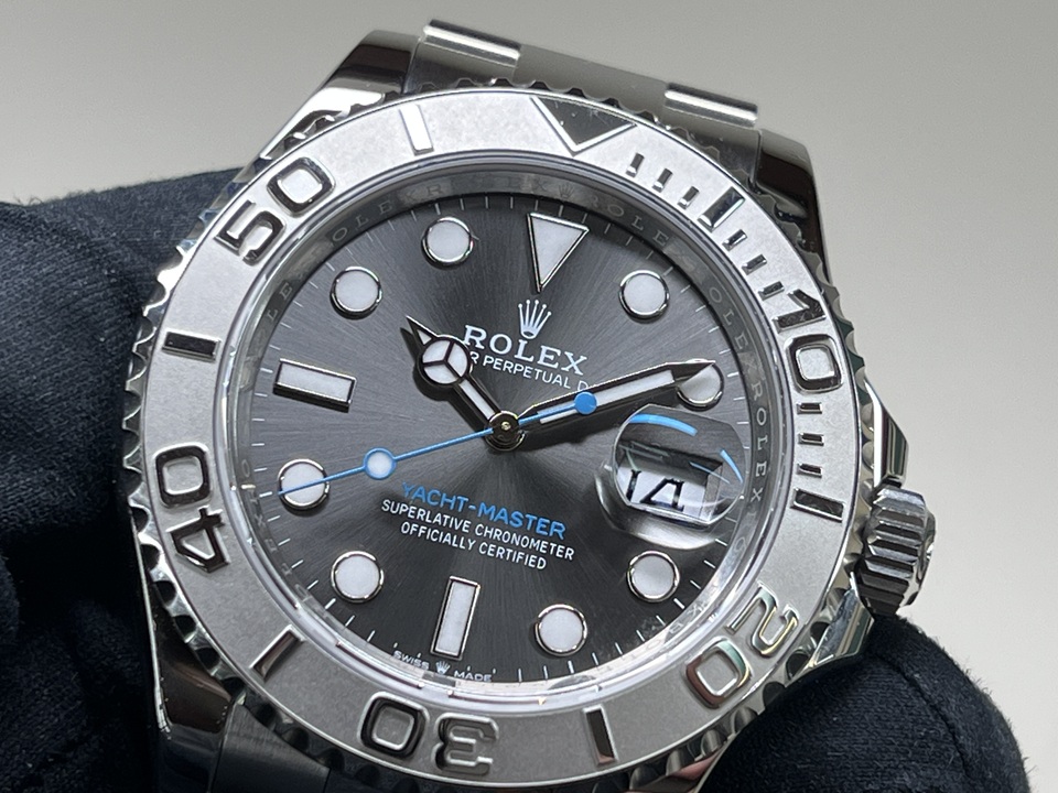 | 本日は“YACHT-MASTER”(Ref.126622)スレートダイヤルをご紹介。2019年に登場したこちらの『Ref.126622』。 前モデルのデザインはそのままに、最新鋭ムーブメント『Cal.3235』を搭載し進化を遂げた後継機種となります。 |