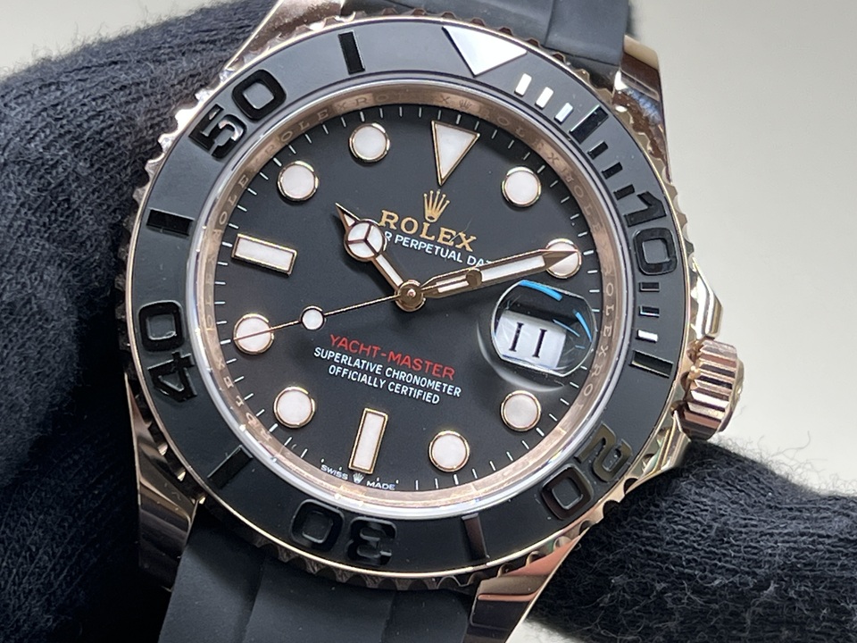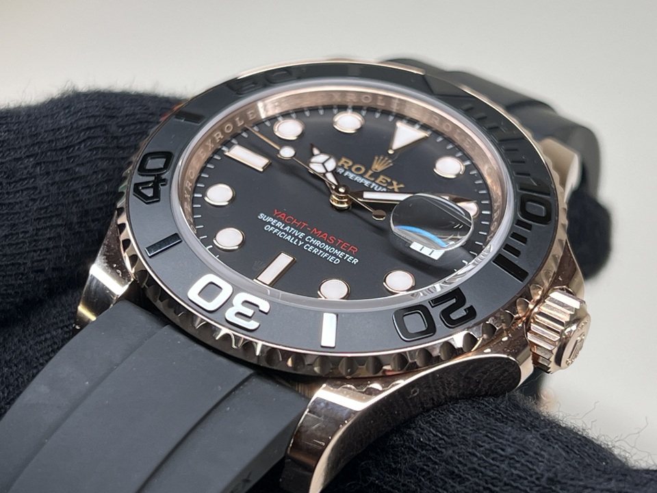| 本日は“YACHT-MASTER”(Ref.126655)ブラックダイヤルをご紹介。2019年に登場したピンクゴールド製のヨットマスター『Ref.126655』。富裕層をターゲットにしたモデルコンセプトで、オイスターフレックスを採用したラグジュアリーなスポーツモデルとなります。 |