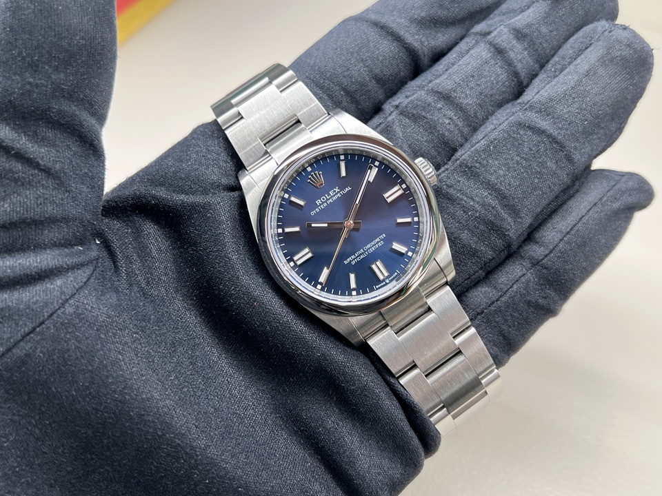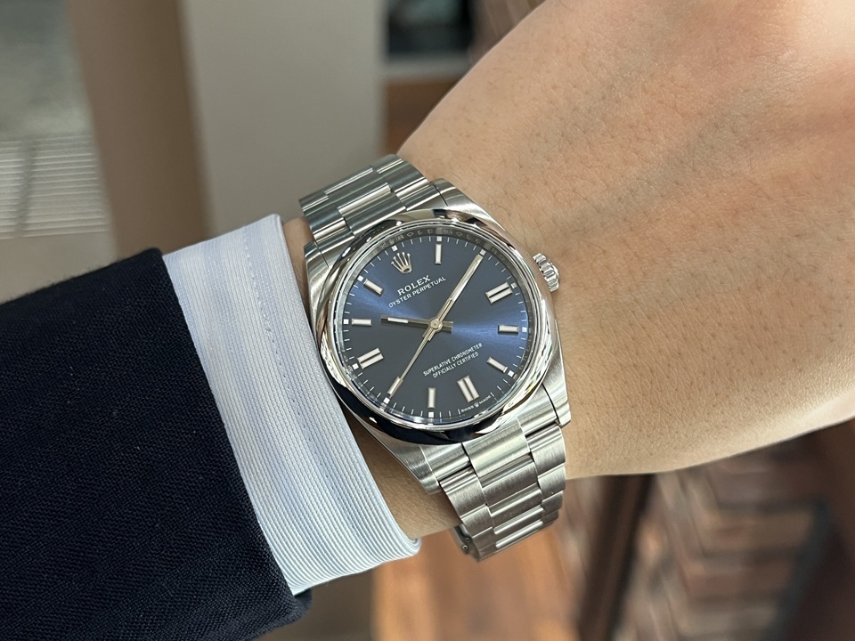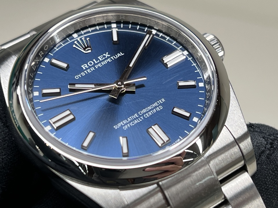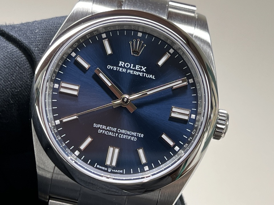 | 本日は“OYSTER PERPETUAL36”(Ref.126000)ブライトブルーダイヤルをご紹介。ロレックスの原点とも言えるモデル『OYSTER PERPETUAL』 こちらは2020年に登場した現行モデルで、シンプルながら高級感の漂う1本でございます。 |