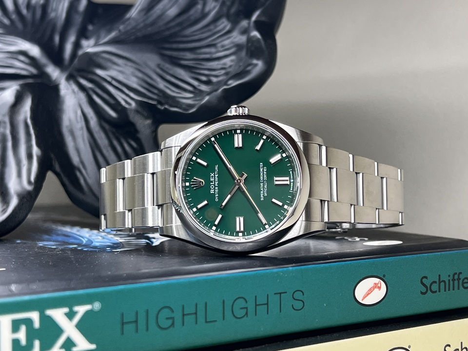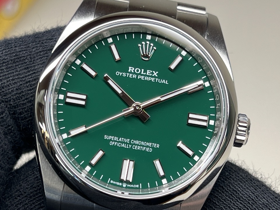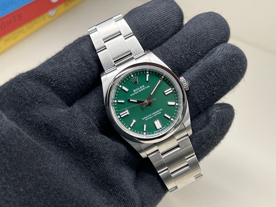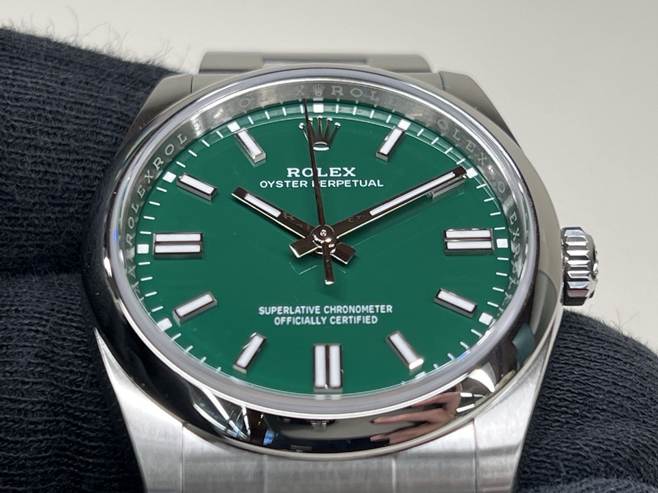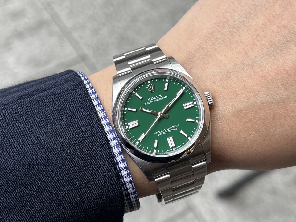 | 本日は“OYSTER PERPETUAL36”(Ref.126000)グリーンダイヤルをご紹介。2020年に登場したOYSTER PERPETUAL『Ref.126000』。 目を惹く鮮やかなカラーダイヤルが人気を博し、現在でも注目を集めているモデルとなります。 |